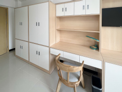 Main facilities: air-conditioner, refrigerator (except four-bed room), Internet, wall-closet, desk, chair, bed, bedding, public kitchen, etc.