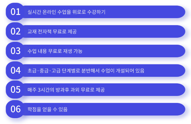 5.  모든 과정의 학비는 교재비를 포함하니 따로 비용을 내어 구매할 필요가 없음.