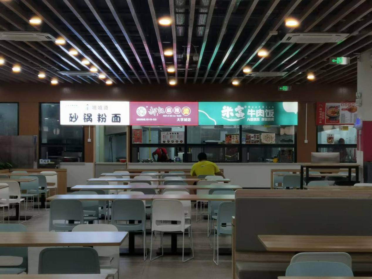 Вторая столовая расположена во второй жилой зоне, а на первом этаже столовой оборудован общественный ресторан, гамбургеры, фруктовая рыбалка и специальные хайнаньские киоски с рисовой лапшой; Этнический колорит (ланьчжоуский рамен) – это халяльный киоск.