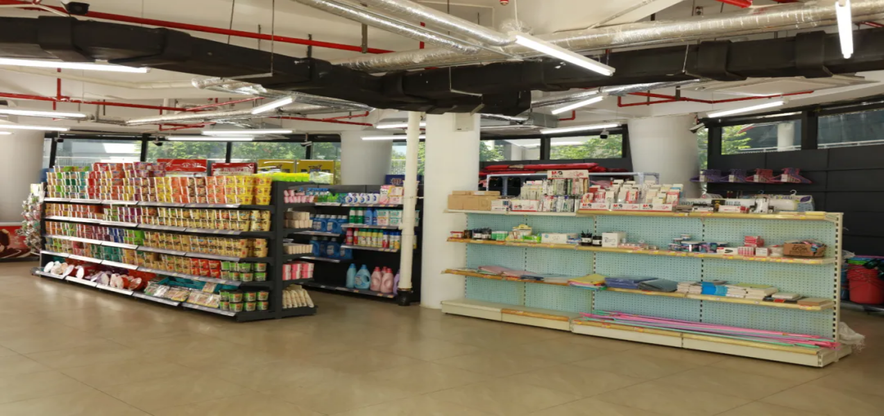 На первом этаже общественного учебного корпуса есть кофе Куди и супермаркет самообслуживания.
