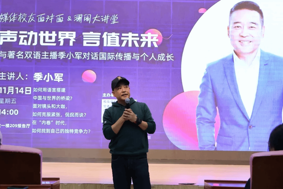 ac米兰app官方入口11月21日电(通讯员 严丹 薛冰延 摄影 范徐一真 郑依楠)11月14日下午,我校90级英语专业校友、原中央广播电视总台著名双语主播季小军应邀重返母校,在教一楼209报告厅作了题为“声动世界·言值未来”的专题分享。本场讲座作为媒体校友面对面及澜阁大讲堂的重要活动,由校友会秘书处、宣传部、学生工作部、英语和高级翻译学院等多部门联合主办,季小军校友就国际传播与个人成长与在场师生进行了深度交流。分享会伊始,英语和高级翻译学院党委书记王秋生老师为季小军校友颁发行业导师聘书。...