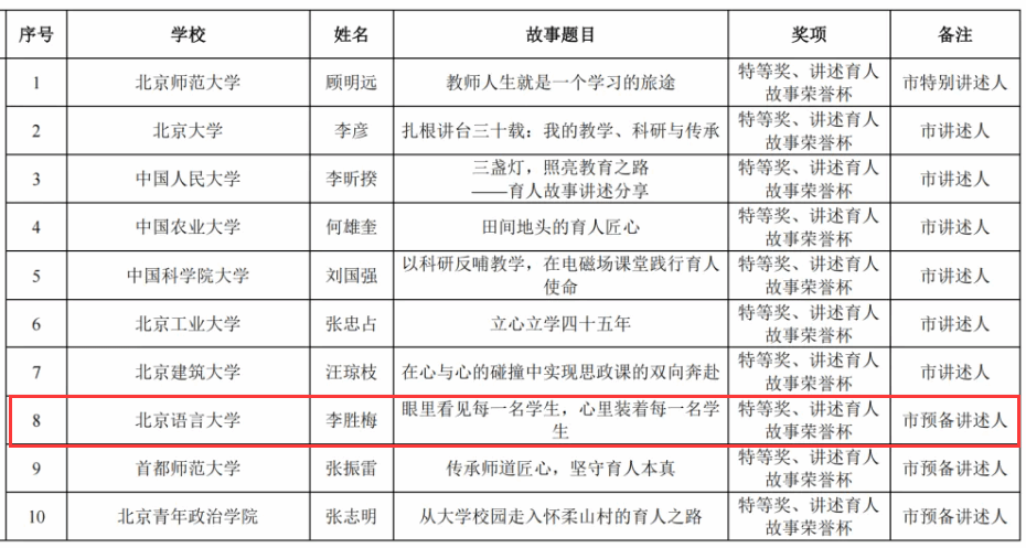 ac米兰app官方入口9月11日电(通讯员 杨曦悦)9月6日,由教育部、中国教育学会指导,北京市委教育工委、北京市教委主办,北京市学校德育研究会承办的第七届北京市大中小幼教师讲述育人故事展示交流活动在京举行。我校推荐报送的2个育人故事案例在全市近500个案例中脱颖而出,取得优异成绩。经专业评审,我校教师教育学院李胜梅教授荣获特等奖和讲述育人故事荣誉杯,文学院李玲教授荣获一等奖。