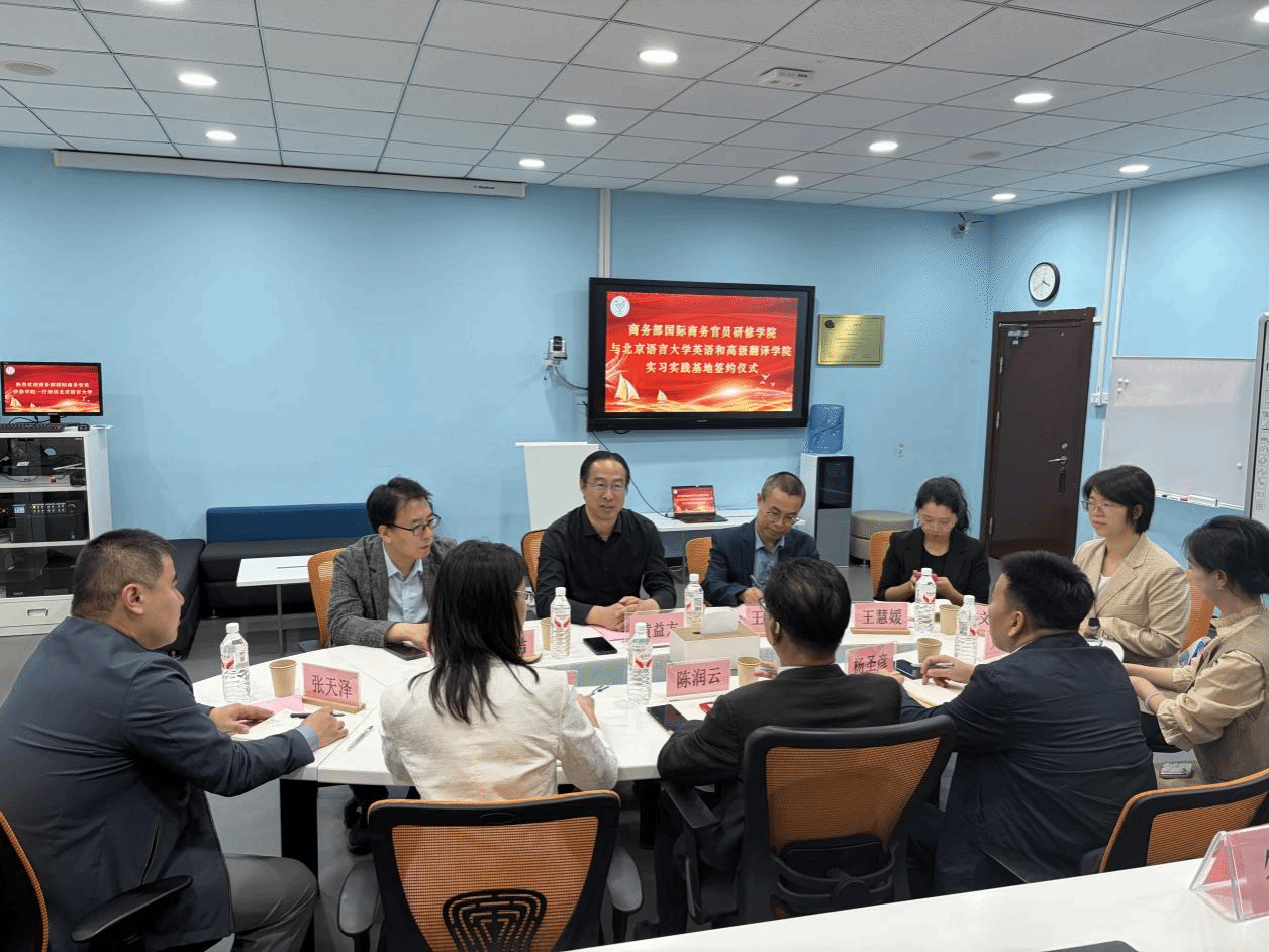 此次合作是我校服务国家战略、深化机构合作的重要举措。双方将通过多层次合作实现优势互补,整合北语多语种学术资源与研修学院实践平台,共同推进国际化人才培养与国家战略服务。商务部国际商务官员研修学院相关负责人,学生处就业创业指导中心、英语和高级翻译学院、商学院相关负责人参加签约仪式。
