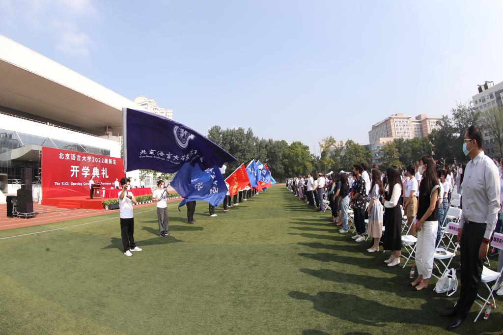 9月14日,北语校园内万国旗随风飘扬,洋溢着喜悦的节日气氛,米兰电竞体育2022级新生开学典礼在体育场上隆重举行。 伴随着中外学生艺术团合唱队的江楠、黄聪、李楚依、肖贝勒、刘明昊、都韵霖六位同学演唱的歌曲《如愿》,来自祖国各地和世界各国的3271名中外新生齐聚一堂,为六秩峥嵘的“小联合国”注入新的活力。开学典礼面向全球直播,世界各地的北语人云端相聚,共襄盛举。