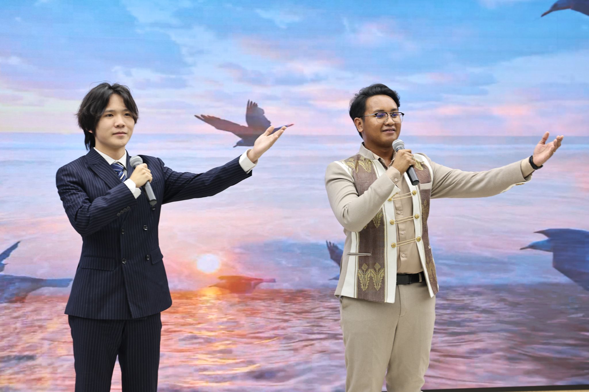 我校中外学生带来诗朗诵《我喜欢出发》,表现了文明互鉴和公交文化的美好寓意。
