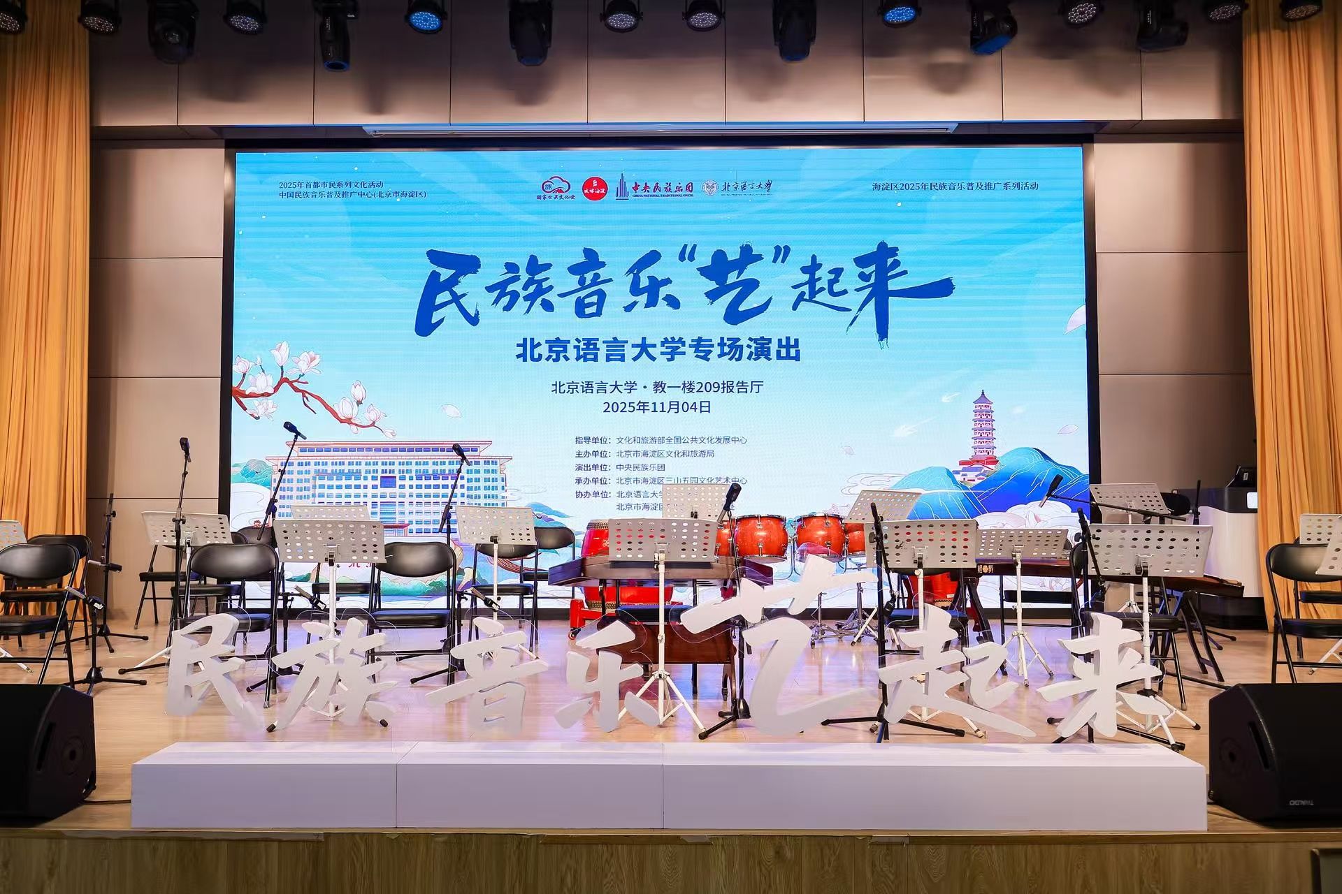 ac米兰app官方入口11月17日电(通讯员 张振伟 摄影 罗淼淼)11月4日晚19:00,教一209报告厅座无虚席,掌声与乐声交织成温暖的文化共鸣——“民族音乐‘艺’起来”惠民演出北语专场在此圆满落幕。这场由文化和旅游部全国公共文化发展中心指导,海淀区文化和旅游局主办、海淀区三山五园文化艺术中心承办、米兰电竞体育艺术学院与学院路街道协办的演出,以国乐为桥,为中外师生打造了一场兼具传统底蕴与创新活力的听觉盛宴,不仅让丝竹雅韵浸润人心,更完美诠释了“以民乐为桥,促文化互鉴”的活动宗旨。活动取得良好反响,现场400余人参加;“文旅海淀”进行了视频和图片直播,线上近50000人次观看。