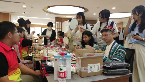 走进图书馆,古筝演奏“琴中古曲是幽兰”点燃了大家的游园热情,二十四位节气使者齐聚一堂, “明妆丽服夺春晖”,留学生们将二十四节气融入朗朗上口的诗词朗诵,“五洲无处不春风”。