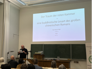 当地时间2023年12月11日晚上18点,波恩大学孔子学院与波恩大学汉学系在波恩大学主楼成功举办名为“解读中国著作《红楼梦》中的佛教意蕴”讲座。此次讲座邀请到特里尔孔子学院外方院长卜松山教授(Prof. Dr. Karl-Heinz Pohl)主讲,以及波恩大学汉学系的廉亚明教授(Prof. Dr. Ralph Kauz)担任主持人。