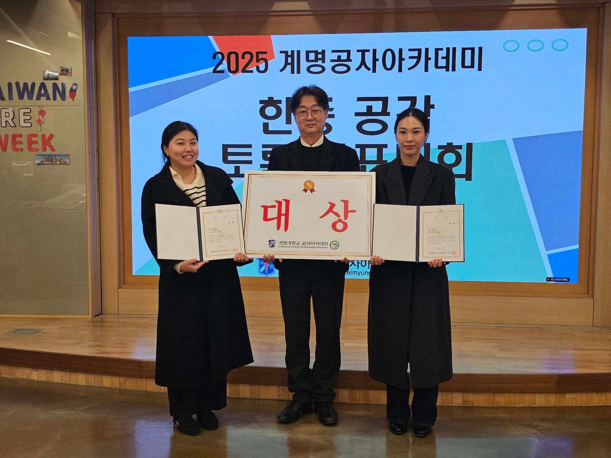 大赛由孔子学院申银贤老师主持,中方院长张莉教授首先致辞,对参赛学生的热情参与表示欢迎,鼓励同学们在协作中相互学习、共同成长;韩方院长尹彰浚教授随后致辞,希望以此为契机促进两国青年更深入的文化互鉴。本次赛事的评委由尹彰浚院长、张莉院长,以及汉文教育系李春姬教授、中国语中国学系최은정教授共同担任,为学生的语言表现与主题呈现提供专业指导与点评。