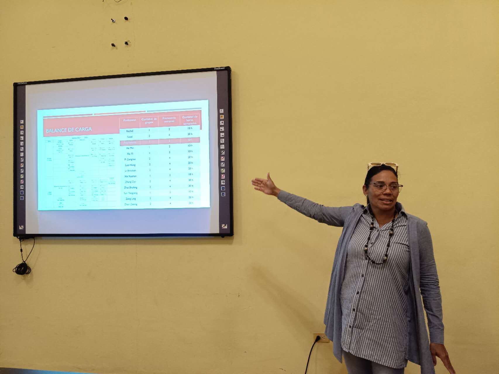 下午,孔院组织了教学总结会,孔院教师与相关工作人员齐聚哈瓦那大学巴罗那楼,共同探讨汉语教学的发展方向。孔苏埃洛女士重点分析了2025-2026学年的教学数据。会上,教师们就教学课时分配、课程内容优化及学生留存率等问题展开了深入讨论。伊塔娜老师表示:“我们应通过多样化的教学形式与本土化的教学方法,让汉语学习更加简单实用。”会议明确了下一阶段的工作方向,并提出要进一步提升教师的教学能力,打造具有古巴特色的汉语教学模式。